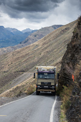 Gegenverkehr ohne Ende. Die Teerstrasse ermöglicht es in flottem Tempo zu fahren.