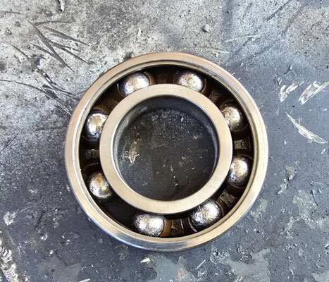 Nach erneuter Suche bekommen wir eine Meldung von Lima: Das Lager mit der neuen Nummer ist am Lager und wird zugestellt. Dauert 2 Tage. Vorsichtshalber geben wir nochmals alle Angaben des benötigten Lagers durch, was von Lima bestätigt wird. Zwei Tage später kommt das Paket an. Drei Lager haben wir bestellt, zwei sind richtig, das Hauptwellenlager könnte von einem Dinosaurier sein. Zu groß, zu dick und vor allem zu falsch. Wie haben die wohl in Lima gemessen? Die Angaben hatten sie ja.
